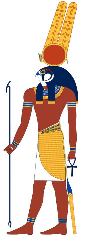 Era representado como um homem com uma cabeça de falcão, tendo na cabeça duas plumas altas e um disco solar com uraeus (serpente) duplo. Nas suas mãos poderia segurar vários objectos, como um machado, setas e arcos. Poderia também ser representado como quatro cabeças que vigiam os pontos cardeais. Na Época Baixa foi representado com a cabeça de um boi.