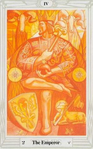 O Imperador como o número IV, os quatro pilares, é o construtor de nossas fundações mundiais. Estável, prático, bem sucedido, ele cria o império de sua visão. É o arquétipo do Pai e do macho, daquele que promove a construção de vários mundos. Como o Ígneo Cordeiro de Áries, ele movimenta habilmente seu poder e vontade, administra todas as coisas com firmeza, mas exige a sapiência. O Imperador é o homem que todos deveríamos ser, estável, íntegro e poderoso.
